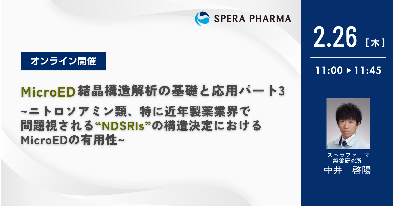 今回のテーマは、「ニトロソアミン類、特に近年製薬業界で問題視される“NDSRIs”の構造決定におけるMicroEDの有用性」です。最新の研究実績を交えて解説いたします。